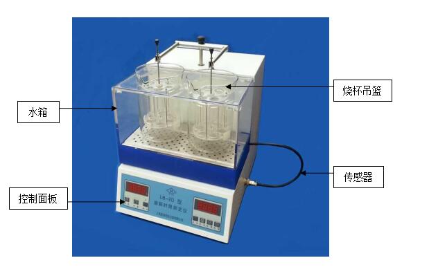 放入水箱中,水箱中可盛放略低于35℃的溫水,再調(diào)節(jié)水位高度和吊籃的吊桿高度,使吊籃上升時的篩網(wǎng)在水面下15mm處,下降時距燒杯底25mm。